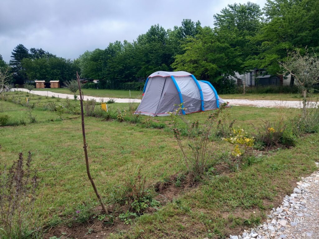 Les 20 emplacements dédiés aux campeurs sont spacieux, d’environ 70m². Ils sont positionnés dans la partie basse du camping, au calme. Chaque parcelle est séparée par de petites haies de feuillus.